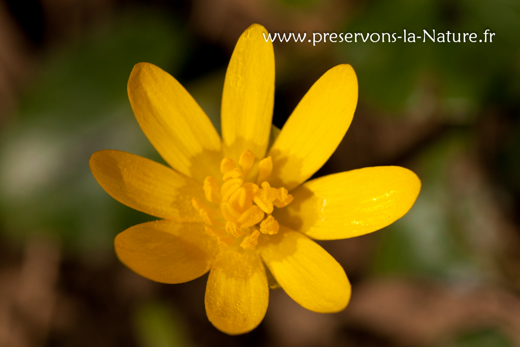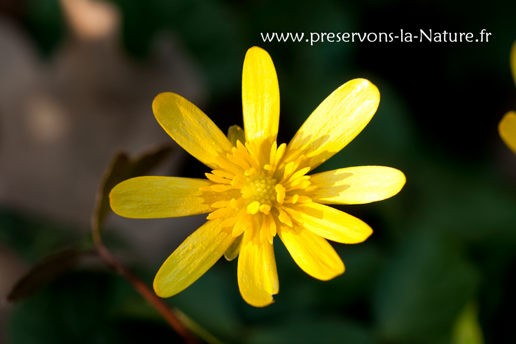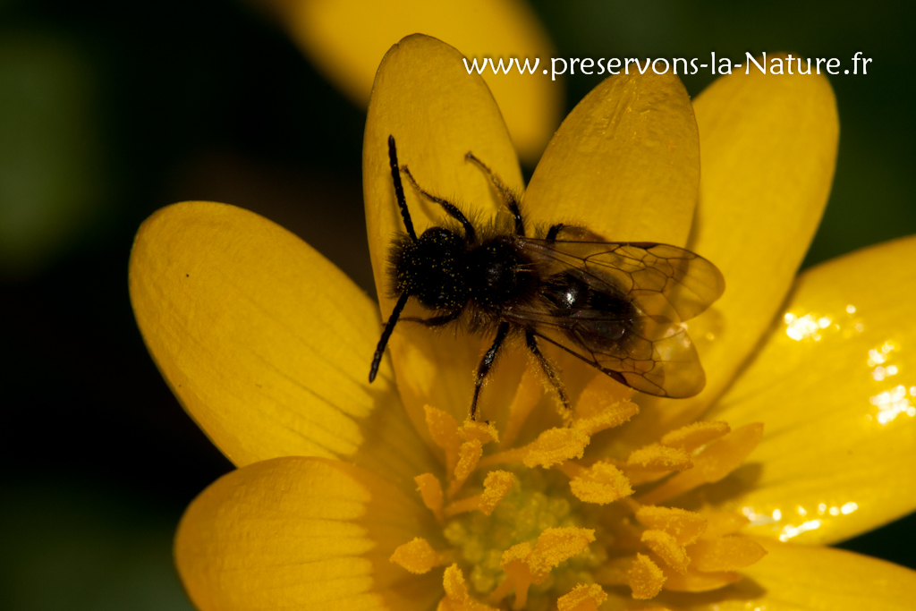 Suivent de peu l’apparition de magnifiques fleurs jaunes. Il s’agit des premières renoncules de l’année : les ficaire fausse-renoncule (Ranunculus ficaria). Les butineurs et en particulier les premières abeilles (Andrena sp.) sont attirées :