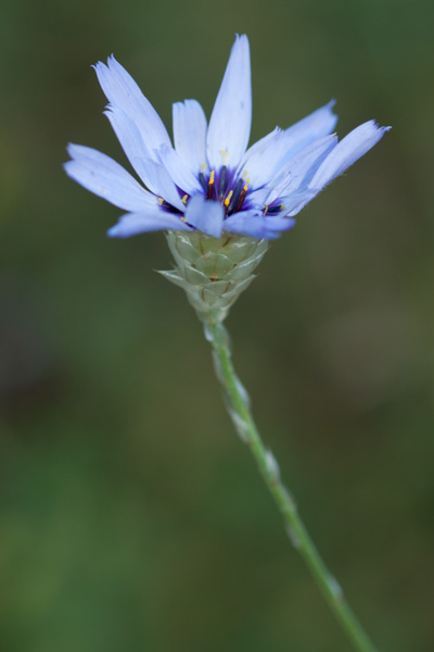 La hauteur de cette plante vivace varie de 30 cm à 90 cm. Les tiges sont dressées, parfois ramifiées. Elles sont cotonneuses. Les feuilles sont alternes, d’étroites à linéaires. Les feuilles supérieures sont d’une plus petite dimension que les feuilles basales. Elles présentent une pilosité. Le pédoncule est très long, de l’ordre de 20 à 30 centimètres. L’inflorescence se présente sous forme d’un capitule terminal. Les fleurs ligulées sont de couleur bleue disposées sur un ensemble de bractées imbriquées de couleur argentée. Le fruit se présente sous forme d’akène comportant une pilosité de couleur brune, surmonté d’une aigrette blanche.