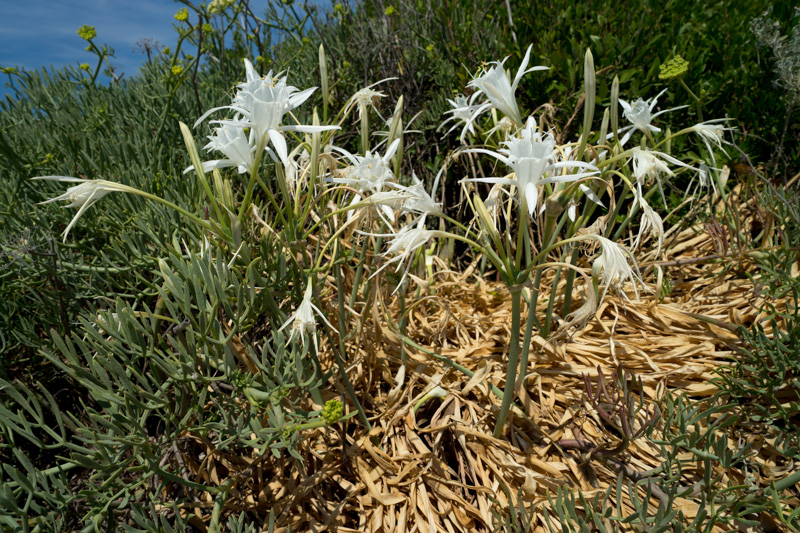 Le lis de mer (Pancratium maritimum L.) fait partie de la famille des Amaryllidacées (Amaryllidaceae). Sa période de floraison s’étale de juin à septembre. Ses autres noms communs sont le Lis Mathiole, le lis maritime, le lis des sables, le narcisse de mer, le pancrace maritime.
