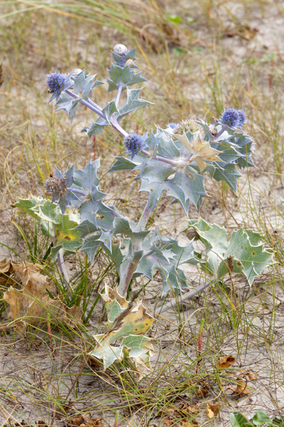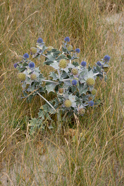 Le Panicaut maritime (Eryngium maritimum L.) fait partie de la famille des Apiacées (Apiaceae). Sa période de floraison s’étale de juin à septembre. Ses autres noms communs sont le Panicaut des dunes, le Panicaut de Mer, le Chardon bleu, le Chardon des dunes.