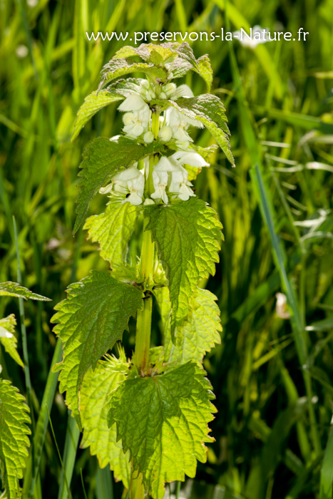 Le lamier blanc (Lamium album) fait partie de la famille des Lamiacées. Sa période de floraison s’étale d’Avril à Juin. On peut parfois la rencontrer en Septembre mais c’est très rare. On la trouve plus particulièrement en lisière de forêt mais aussi près des plans d’eau. Elle affectionne les sols frais et riches en nitrate (C’est pourquoi, on peut la trouver près des cultures). Il s’agit d’une espèce héliophile ou de demi-ombre.