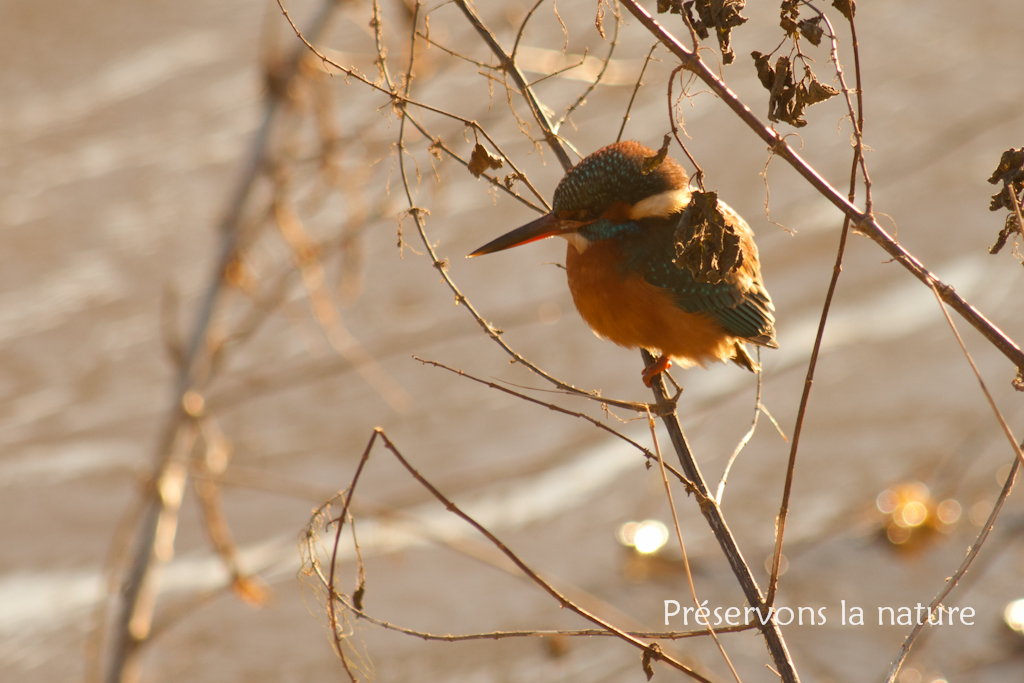 Le Martin-Pêcheur (Alcedo atthis) est un hivernant commun des bord de Loire. Il ne s’en éloigne guère. Il se nourrit de petits animaux aquatiques dont de petits poissons. Il ingurgite sa proie en un seul coup. Il n’est pas rare de le voir piquer vers la surface de l’eau. Les arrêtes de poissons sont régurgitées sous forme d’une boule.