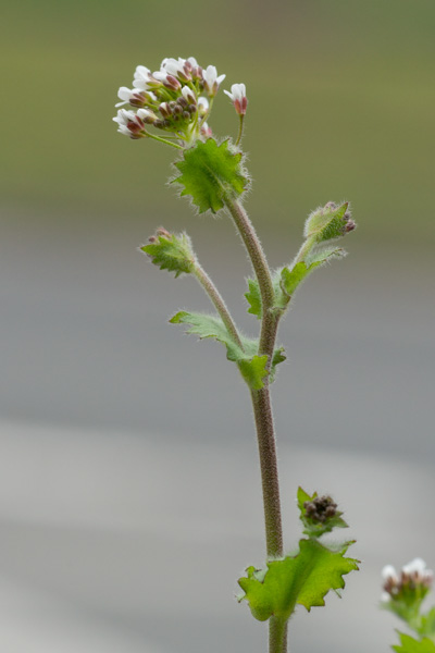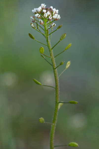 Plante annuelle, poilue ; tige de 10 à 40 cm, dressée, grêle, simple ou rameuse, feuillée ; feuilles ovales oblongues, dentées, les radicales en rosette, les caulinaires distantes, embrassant la tige par 2 oreillettes arrondies ; fleurs blanches, très petites ; pétales arrondis au sommet ; grappe fructifère très allongée, lâche, à pédicelles étalés, 1 à 2 fois plus longs que les silicules ; silicules oblongues-elliptiques, glabres ; style presque nul ; 6 à 8 graines dans chaque loge.