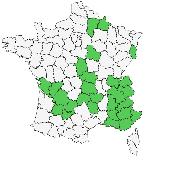 Ain, Aisne, Allier, Alpes-de-Haute-Provence, Alpes-Maritimes, Ardennes, Bouches-du-Rhône, Cantal, Charente, Charente-Maritime, Cher, Dordogne, Drôme, Haute-Loire, Hautes-Alpes, Haute-Savoie, Haut-Rhin, Isère, Lot, Lot-et-Garonne, Lozère, Puy-de-Dôme, Savoie, Tarn-et-Garonne, Var, Vaucluse, Yonne.