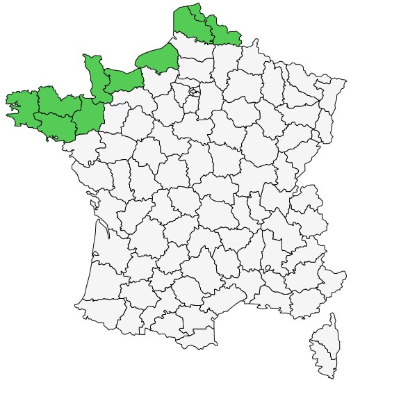 Calvados, Côtes-d’Armor, Finistère, Ille-et-Vilaine, Manche, Morbihan, Nord, Pas-de-Calais, Seine-Maritime.