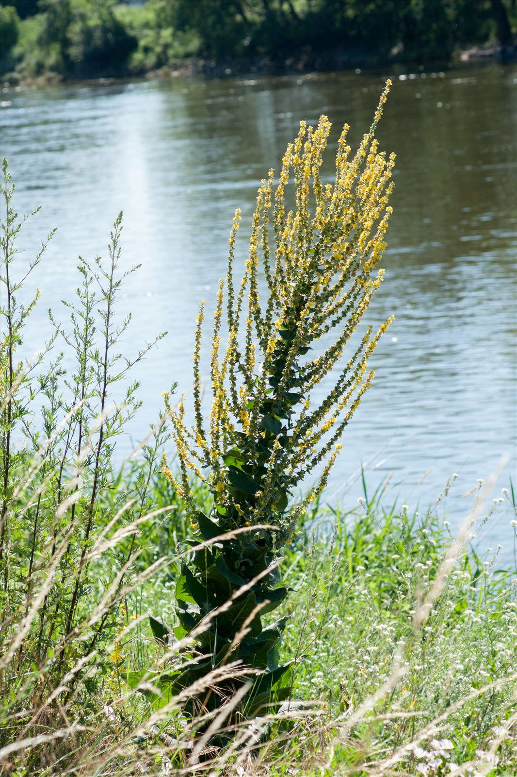 Plante bisannuelle de 50 cm à 1-2 mètres, couverte d'un duvet blanc, floconneux, caduc ; tige robuste, cylindracée, rameuse dans le haut ; feuilles un peu crénelées, les inférieures obovales, à court pétiole, les autres ovales-lancéolées, sessiles, non décurrentes ; fleurs jaunes, moyennes, en glomérules écartés, formant une panicule à rameaux étalés-ascendants ; pédicelles 1 fois 1/2 plus longs que le calice petit (2-3 mm) ; corolle de 20-25 mm, plane ; étamines semblables, à filets hérissés de poils blancs-jaunâtres à anthères insérées en travers ; capsule ovale.