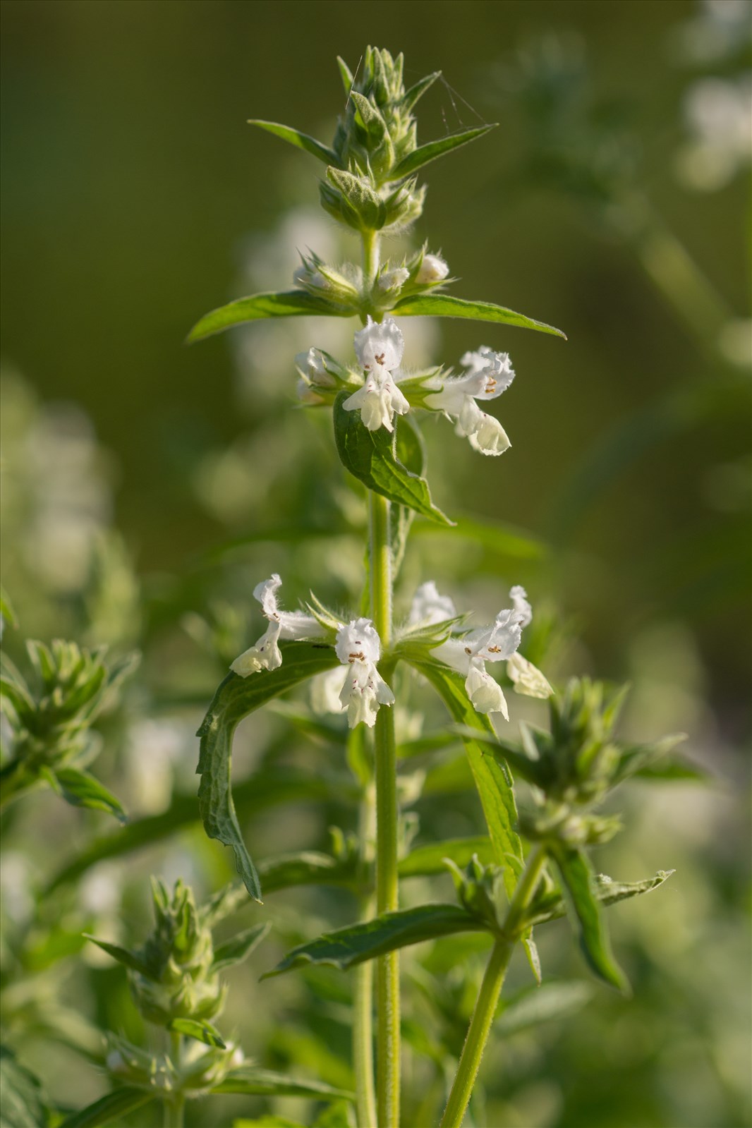 Plante annuelle ou pérennante de 10-40 cm, finement pubescente, à racine pivotante ; tige dressée, rameuse ; feuilles glabrescentes, oblongues-lancéolées, crénelées-dentées, atténuées en pétiole, les florales aiguës ; fleurs d'un blanc jaunâtre, 3-6 en verticilles la plupart écartés ; bractéoles très petites ; calice poilu, tubuleux en cloche, à dents arquées, lancéolées en alêne à pointe brièvement ciliée, de moitié plus courtes que le tube ; corolle 1 fois plus longue que le calice, à tube saillant muni d'un anneau de poils transversal, à lèvre supérieure entière.