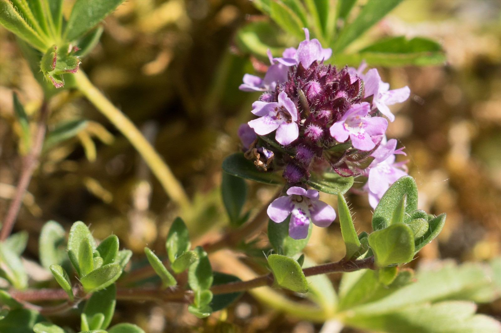 Plante vivace de 10-30 cm, velue-grisâtre, aromatique ; souche peu épaisse, émettant des tiges grêles, longuement couchées-rampantes, hérissées sur 2 faces opposées alternativement ; feuilles rapprochées, petites (4-8 mm de long sur 2-4 de large), ovales ou obovales-oblongues, rétrécies à la base, hérissées sur les 2 faces, à nervures peu saillantes ; inflorescence en têtes globuleuses ou en épis courts ; calice hérissé.