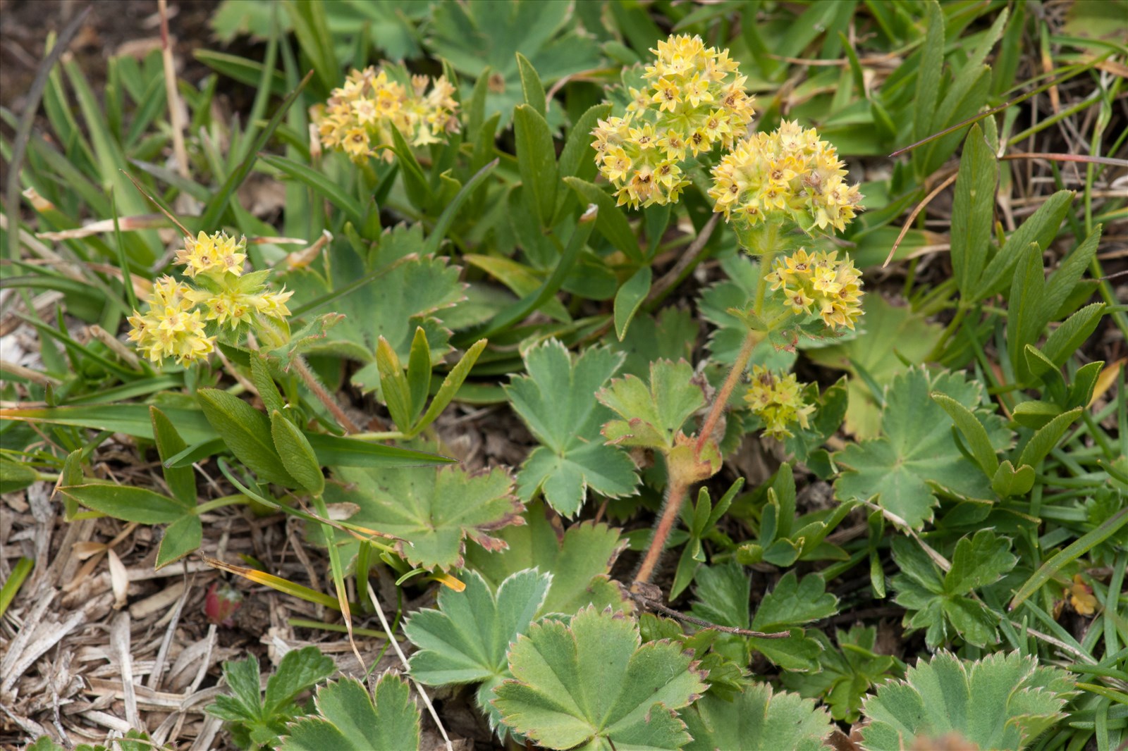 Plante vivace généralement élancée, glabre ou poilue ; feuilles souvent grandes, suborbiculaires, vertes sur les 2 faces, à 7-11 lobes peu profonds, ordinairement dentés en scie sur tout leur pourtour; stipules dentées ou un peu incisées-étoilées; inflorescence glabre ; fleurs d'un vert jaunâtre, assez petites, en cymes corymbiformes diffuses ; calice et calicule ordinairement peu étoiles après la floraison. Plante très polymorphe.