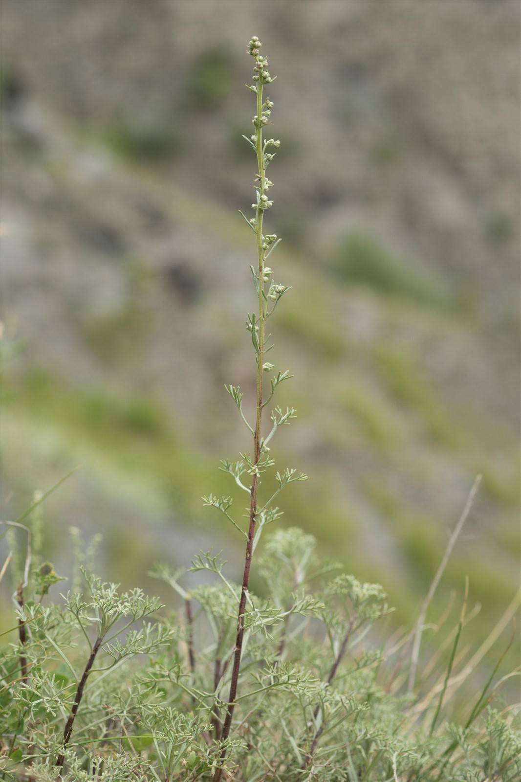 Plante vivace de 30 à 60 cm. En touffe, ligneuse à la base, ascendante, glabre ou presque ; feuilles vertes, ponctuées, glabres ou un peu pubescentes, ovales, à pétiole auriculé à la base, les caulinaires pennati ou bipennatiséquées, à divisions linéaires, très étroites, souvent subfiliformes ; involucre pubescent, blanchâtre, à folioles ovales, largement scarieuses ; réceptacle à poils assez courts ; capitules globuleux, pédicellés, penchés, dépassés par la bractée. Plante à odeur de camphre.