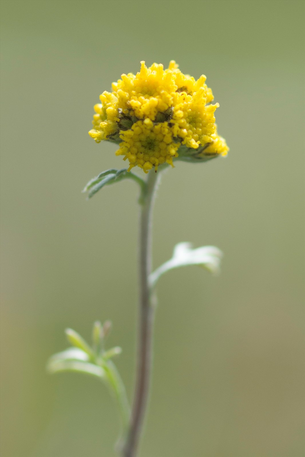 Plante vivace, à souche cespiteuse, émettant des rosettes de feuilles, herbacée, velue, soyeuse, luisante, de 6 à 15 cm ; tige ascendante, simple, blanchâtre ; feuilles blanches sur les deux faces, pétiolées ovales, les inférieures bipennatiséquées, les caulinaires à pétiole plan à limbe petit, palmatiséqué-digité, toutes à lanières linéaires-lancéolées ; capitules subglobuleux, dressés, brièvement pédonculés ou subsessiles (quelquefois un ou deux capitules inférieurs assez longuement pédonculés), en petit corymbe compact ombelliforme ; fleurs jaunes, au nombre de 30 à 40 dans le capitule.