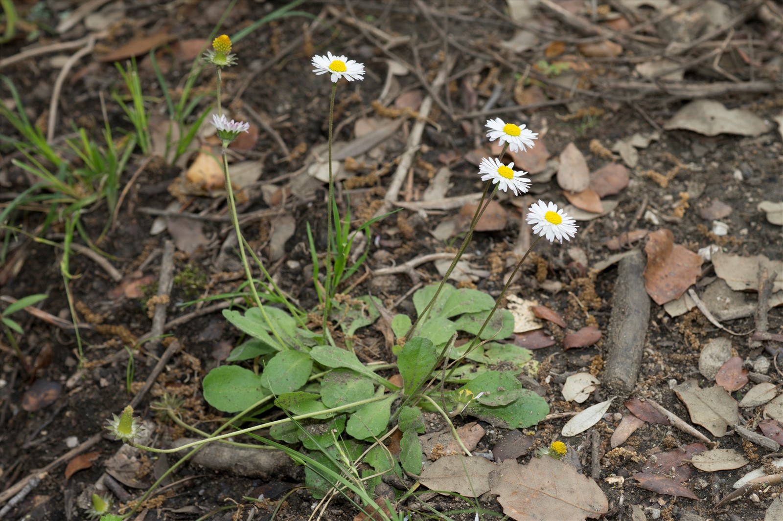 Espèce vivace voisine de Bellis perennis, plus robuste, 15-30 cm tige scapiforme, pubescente ; feuilles en rosette radicale, pubescentes-grisâtres et souvent presque veloutées, plus allongées, à limbe oblong-obovale, trinervé, insensiblement rétréci en pétiole, entier ou faiblement crénelé ; involucre à folioles plus longues, plus aiguës ; capitules grands, atteignant et dépassant 3 cm de diamètre, ligules purpurines plus larges ; plante automnale paraissant quelquefois à la fin de l'hiver.