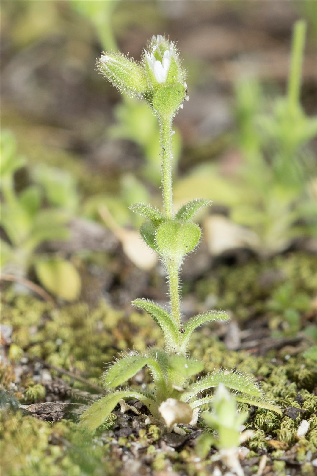 Plante annuelle, d'un vert pâle, poilue-visqueuse ; tiges de 4-12 cm, raides, dressées ; feuilles inférieures elliptiques-oblongues, les caulinaires plus larges et courtes, elliptiques ; fleurs petites, en cymes plus ou moins denses ; pédicelles toujours dressés et plus courts que le calice ; bractées toutes herbacées ; sépales lancéolés-aigus, à peine scarieux aux bords, à sommet glabre ; pétales linéaires, plus courts que les sépales ; capsule cylindrique, un peu courbée, dressée, se prolongeant dans la direction du pédoncule, 1 fois plus longue que le calice.