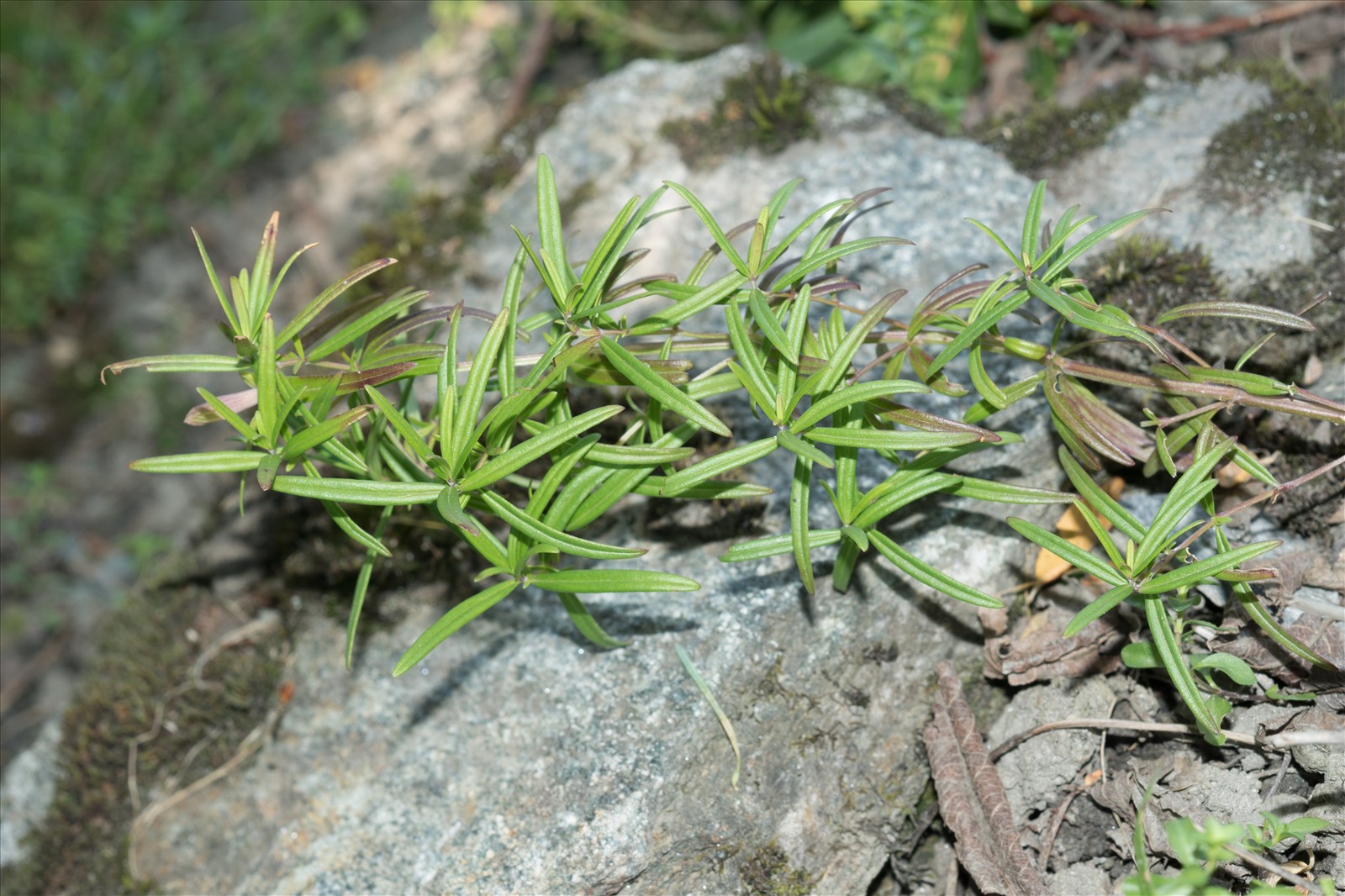 Plante vivace de 10 à 30 cm, glabrescente, à tiges grêles, simples, dressées ou ascendantes, feuillées. Feuilles linéaires-lancéolées, entières, enroulées par les bords, obtuses, mutiques, atténuées et sessiles à la base, un peu ponctuées en dessous. Fleurs bleues, grandes, rapprochées en épi ovale serré au sommet de la tige.