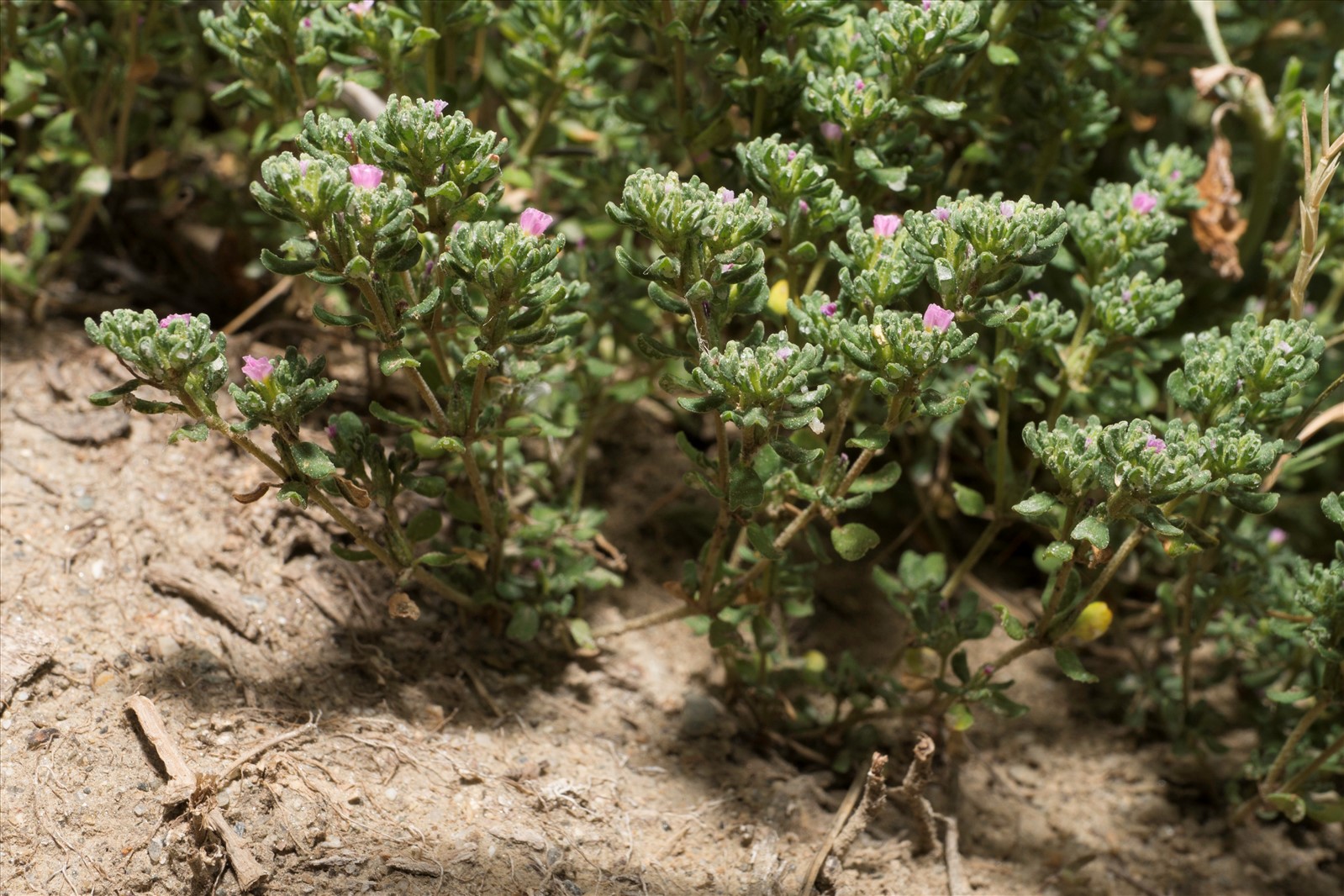 Plante annuelle, à racine grêle ; tiges très rameuses, étalées en cercle, pubérulentes ; feuilles obovales, planes, tronquées et souvent échancrées au sommet, contractées en pétiole brièvement cilié, glabres en dessus, pulvérulentes en dessous ; fleurs d'un violet pâle, petites, sessiles dans les dichotomies et terminales en cymes feuillées ; calice presque glabre, à 5 côtes ; pétales à limbe ordinairement émarginé, bien plus court que le calice.