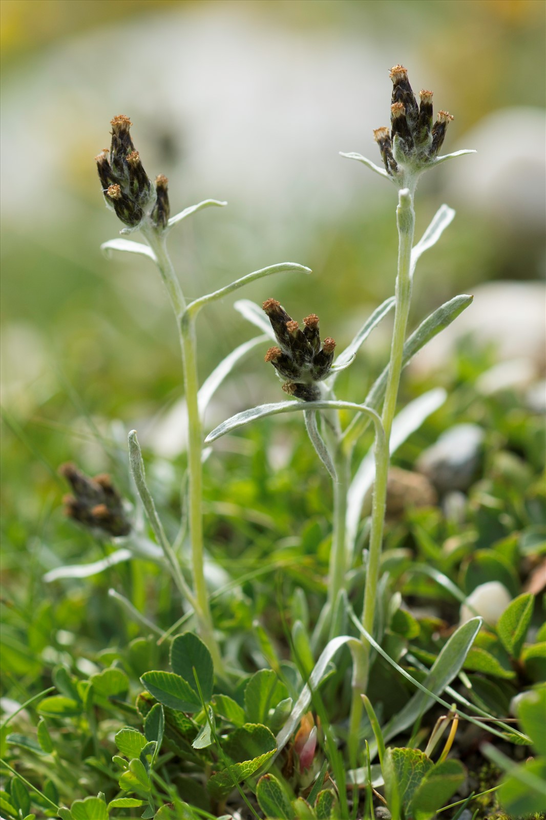 Plante vivace à tiges de 3-14 cm solitaires ou peu nombreuses, non étalées-cespiteuses, dressées ou ascendantes, simples, subfiliformes, blanches-tomenteuses ; feuilles lancéolées-linéaires, blanches-tomenteuses sur les deux faces, obscurément trinervées ; involucre laineux à la base, à folioles brunes, scarieuses au sommet et sur les bords, luisantes, les extérieures ovales, n'atteignant que le tiers de sa longueur, les intérieures lancéolées ; capitules subsessiles, peu nombreux, ordinairement 3-8 en grappe serrée, terminale.