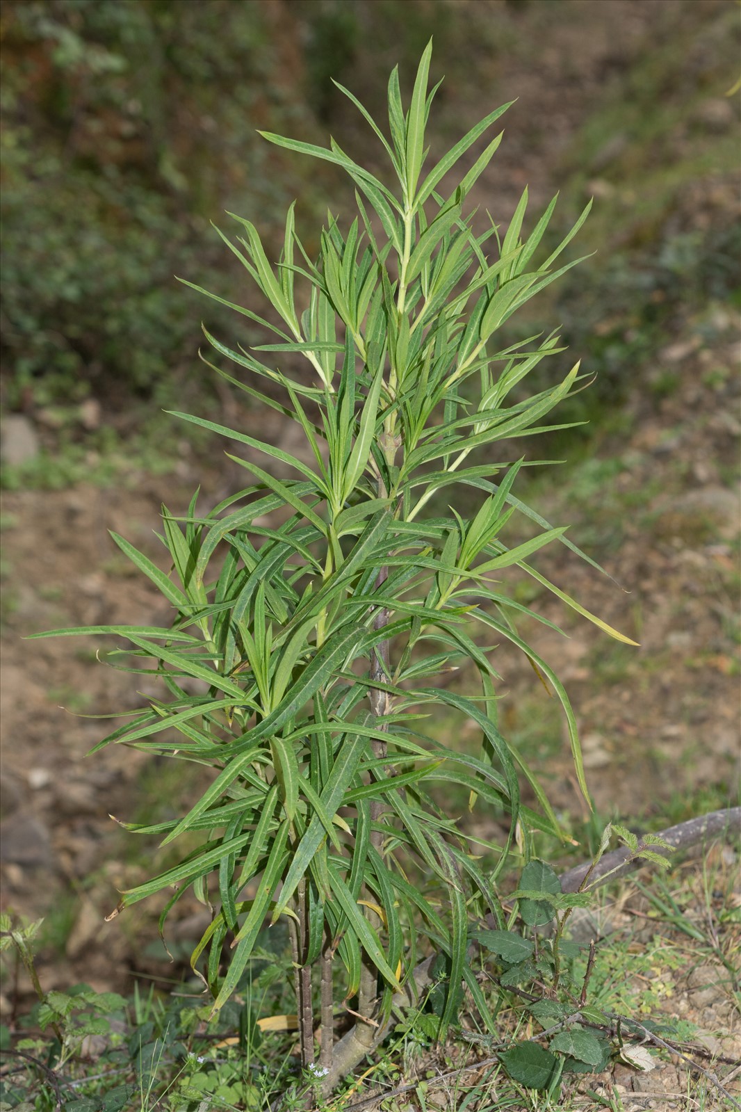 Plante vivace de 1-2 mètres, pubérulente, à tiges sous-ligneuses, dressées, très rameuses et très feuillées ; feuilles allongées, courtement pétiolées, lancéolées-linéaires, acuminées, atténuées aux deux bouts, vertes sur les deux faces, à nervure dorsale seule saillante; fleurs blanches, en ombelles pluriflores lâches, axillaires et terminales ; corolle à 5 lobes réfléchis ; couronne des étamines formée de 5 cornets dépourvus de corne à l'intérieur ; follicules renflés en vessie, ovales-acuminés, glabrescents, tout hérissés de longues soies vertes.