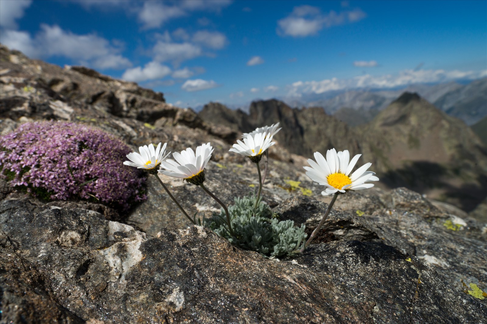 Plante vivace à souche rampante, rameuse, émettant des touffes gazonnantes ; tiges de 5-15 cm, toujours simples, pubescentes ; feuilles glabres ou pubescentes-blanchâtres, nombreuses, mais lâches à la base des tiges, pennatipartites ou pennatifides, à segments peu nombreux, presque linéaires, entiers, contractées en pétiole ailé, feuilles moyennes et supérieures très petites, peu nombreuses, linéaires, entières ; involucre à folioles largement bordées de noir ; akènes surmontés d'une couronne presque complète ; capitules médiocres ne dépassant pas 3 cm de diamètre, à ligules blanches, quelquefois pourprées (var. HISPANICUM G. Gautier).