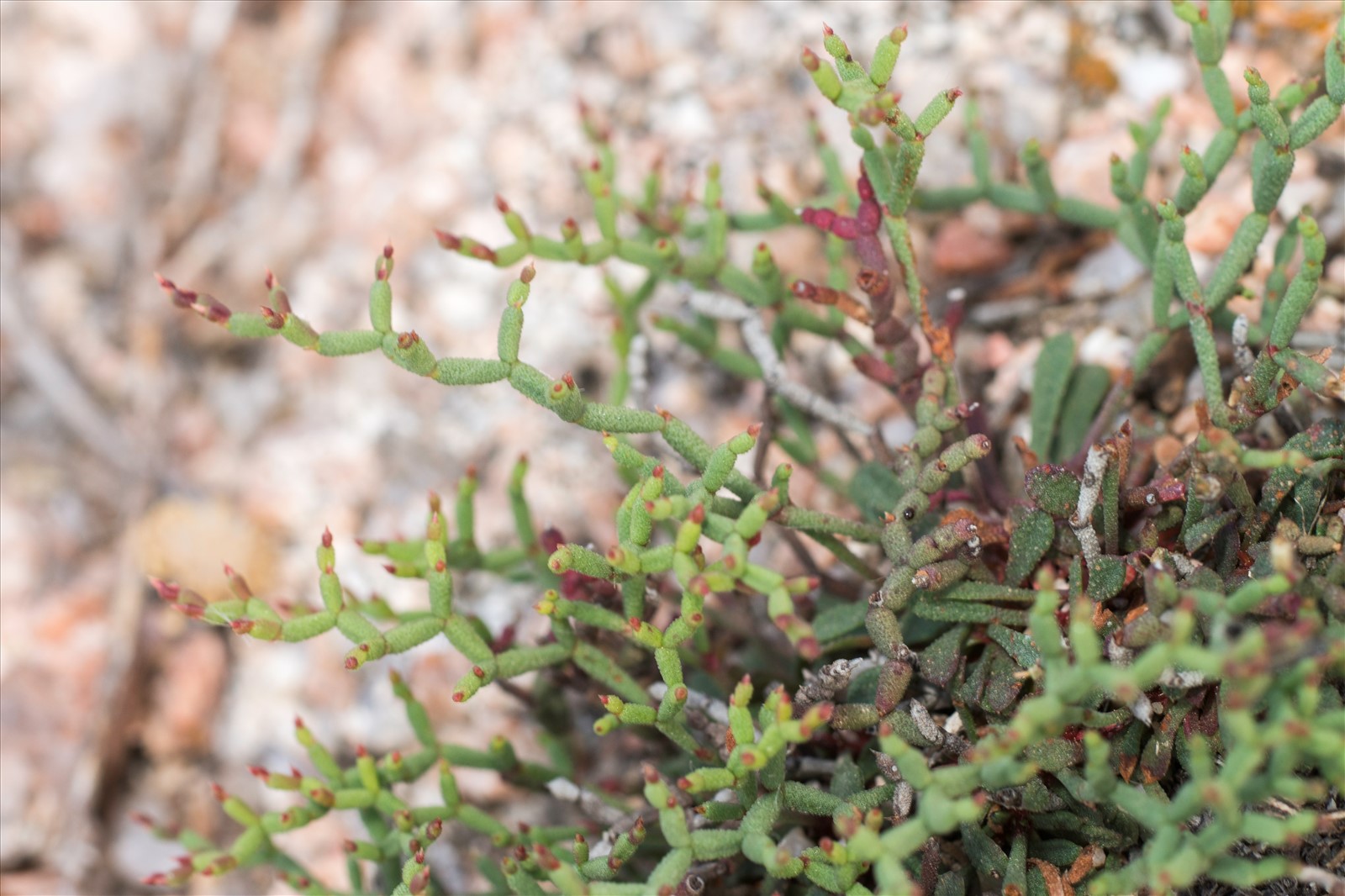 Plante vivace de 10-40 cm, glabre, à divisions de la souche un peu épigées et couvertes de feuilles spatulées, obtuses, rugueuses ; hampes flexueuses, très fragiles, à rameaux stériles très nombreux, à articles courts, étranglés aux 2 bouts, en fuseau, les supérieurs ovoïdes ou subglobuleux ; épillets arqués, très écartés, en panicule assez dense à rameaux dressés ; calice à tube courbé, à dents elliptiques-obtuses paraissant à la fin lancéolées-aiguës.