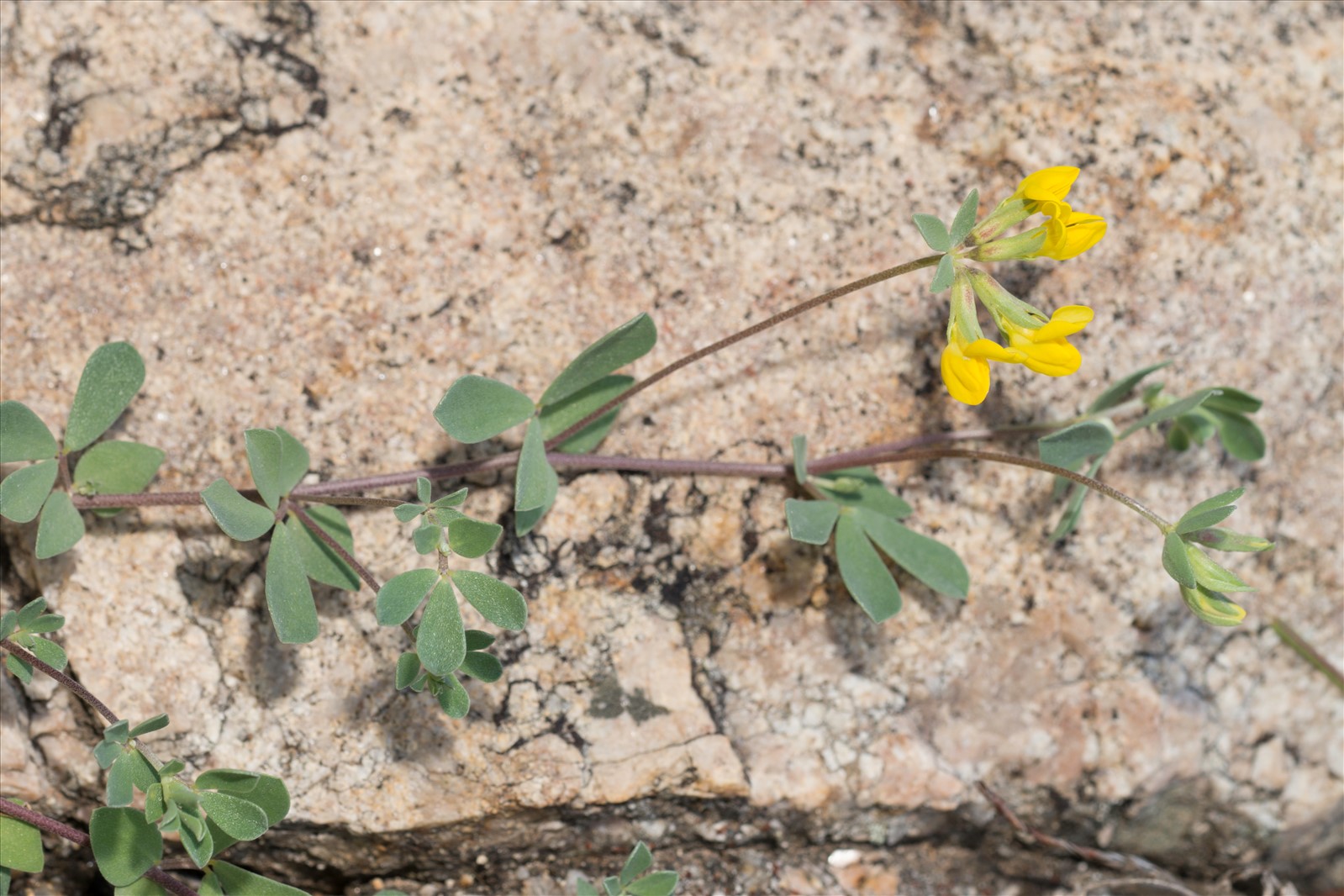 Plante vivace de 10-40 cm, velue, d'un blanc argenté, couchée ou ascendante, à souche ligneuse ; folioles oblongues en coin ; stipules ovales-lancéolées, bien plus longues que le pétiole ; fleurs jaunes, ne verdissant pas, 2-6 sur des pédoncules 3-4 fois plus longs que la feuille ; calice à 2 lèvres, à dents carénées au sommet, inégales, les 2 latérales de la lèvre inférieure bien plus courtes et obtuses ; étendard orbiculaire ; carène fortement courbée et à bec long, souvent tachée de violet au sommet ; gousse de 20-40 mm, assez large, cylindrique, non bosselée.