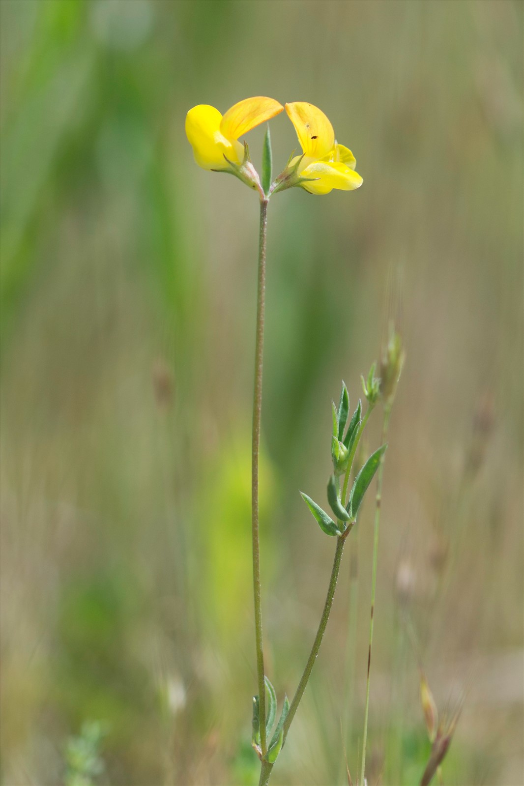 Plante vivace de 30-80 cm, glabrescente, à souche dure ; tiges grêles, couchées-diffuses, très rameuses ; folioles et stipules toutes linéaires ou linéaires-lancéolées, aiguës ; fleurs jaunes, verdissant par la dessiccation, assez petites (1 cm), 1-5 sur des pédoncules filiformes 5-6 fois plus longs que la feuille ; calice en cloche, à dents égales, dressées, triangulaires à la base, atténuées en alêne, plus courtes que le tube ; ailes étroitement oblongues, à bord inférieur presque droit, ne couvrant pas entièrement la carène un peu courbée en angle obtus ; gousse de 20-30 mm, grêle, linéaire, droite.