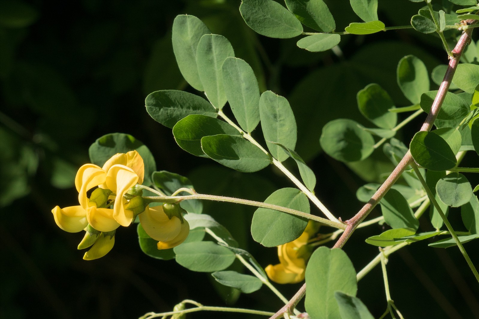 Arbrisseau de 2-3 mètres, non épineux, dressé, à jeunes rameaux et feuilles finement pubescents ; feuilles imparipennées, à 3-5 paires de folioles obovales ou obcordées, entières ; stipules libres, lancéolées ; fleurs jaunes, grandes (2 cm), penchées, 2-6 en petites grappes axillaires, pédonculées, plus courtes que la feuille ; calice pubescent, court, en cloche, à 5 dents inégales, triangulaires, 3 fois plus courtes que le tube ; étendard orbiculaire, redressé ; ailes plus courtes que la carène tronquée au sommet ; étamines diadelphes ; stigmate latéral ; gousses de 4-5 cm sur 2-3, pendantes, très renflées en grande vessie membraneuse, ovale, veinée, glabre, stipitée.