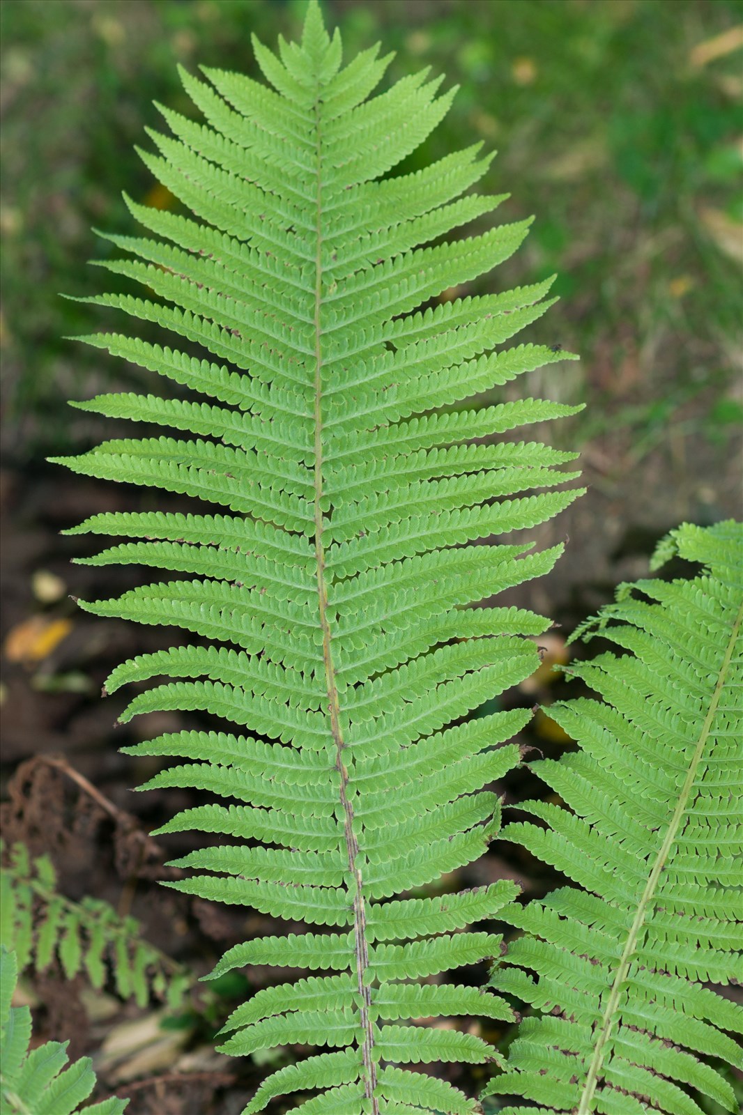 Plante vivace de 30-80 cm, glabre, à souche épaisse ; feuilles oblongues-lancéolées, très atténuées à la base, à pétiole parsemé d'écailles : les stériles ayant le port de la fougère mâle, grandes, molles, courtement pétiolées, bipennatiséquées, à longs segments pennatipartites, à lobes ovales ou oblongs-subrhomboïdaux, entiers, un peu tronqués au sommet ; les fertiles plus courtes, coriaces, à pétiole long robuste et demi-cylindrique, pennatiséquées, à segments allongés, linéaires, entiers ; sores en ligne continue sur la face inférieure des segments, recouverts par la marge réfléchie formant l'indusie.