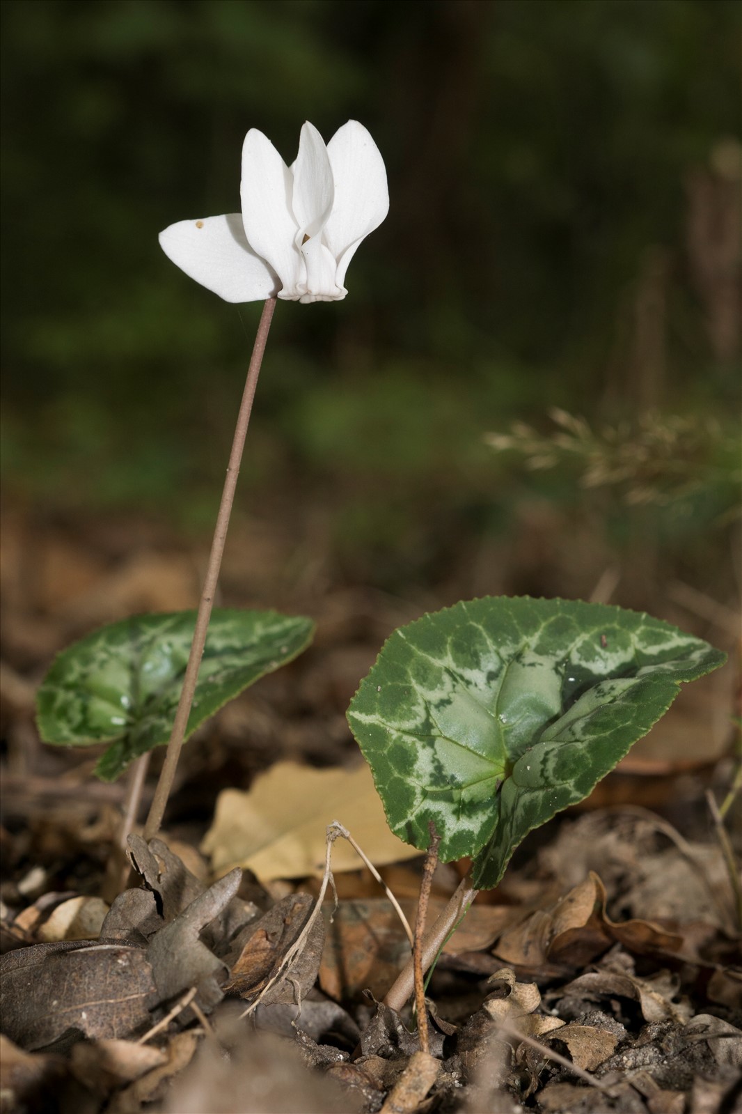 Plante vivace de 5-20 cm, à tubercule gros (3-4 cm de diam.), globuleux-déprimé, tout couvert de radicules fines ; feuilles ovales-triangulaires, obtuses, en coeur et à sinus ouvert à la base, sinuées-anguleuses, à lobes peu profonds, obtus, non mucronés, entières ou crénelées ; hampes à peine plus grêles à la base qu'au milieu ; fleurs paraissant avant les feuilles ; calice dépassant un peu le milieu du tube de la corolle, à lobes acuminés ; corolle rose, à gorge large et à 10 dents formant 5 demi-lunes, à lobes elliptiques-oblongs, trois fois plus longs que le tube ; style non saillant.