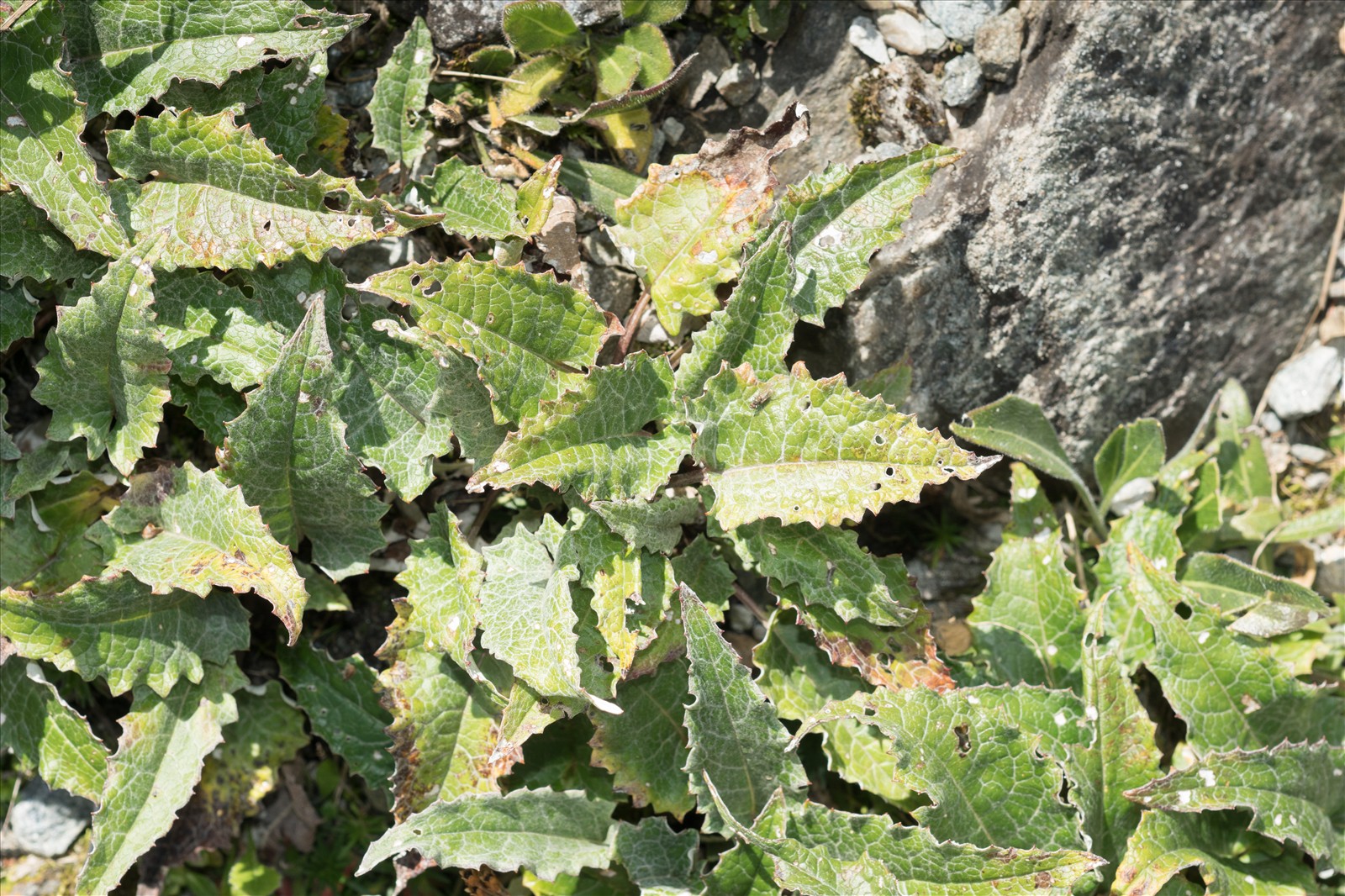 Plante vivace à tige de 15-30 cm simple ou un peu rameuse au sommet, cotonneuse ; feuilles tomenteuses et d'un blanc de neige en dessous, vertes et presque glabres en dessus, les inférieures lancéolées ou lancéolées-oblongues, acuminées, dentées ou sinuées-dentées à limbe cordé ou tronqué-échancré à la base, pétiolées, les supérieures sessiles, étroites, entières, un peu élargies à la base ; capitules subsessiles ou pédoncules en corymbe ; involucre ovoïde à folioles pubescentes, les extérieures ovales, obtuses, mucronulées ; fleurs purpurines ou rougeâtres.
