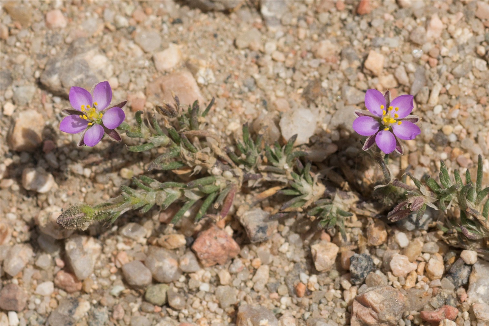 Plante vivace, à souche épaisse ; tiges nettement comprimées à 2 tranchants ; feuilles linéaires, épaisses, un peu charnues ; stipules très courtes, élargies en rein, plus ou moins acuminées ; fleurs lilacées, grandes, en cymes à branches souvent divariquées ; pédicelles égalant à peu près la capsule ; pétales égalant les sépales ovales ; 10 étamines ; capsule subglobuleuse, égalant ou dépassant peu le calice ; graines toutes comprimées-ailées.