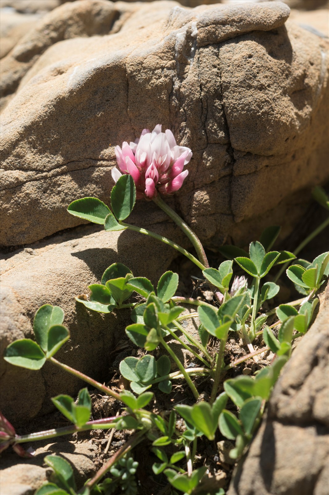 Plante vivace de 5-12 cm, glabre, gazonnante, couchée-ascendante, non radicante ; folioles assez petites, ovales, nervées, finement denticulées tout autour ; fleurs rosées, subsessiles, toujours dressées, en têtes petites, globuleuses, assez serrées ; pédoncules naissant de la souche ; pédicelles plus courts que le tube du calice ; calice glabre, à dents inégales, les supérieures un peu plus courtes que le tube ; étendard 1 fois plus long que le calice ; gousse saillante, non bosselée, à 2-3 graines.