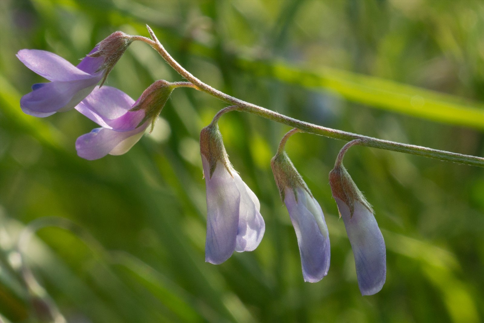 Plante annuelle de 20-50 cm ; folioles étroites, linéaires, ordinairement aiguës ; vrilles simples ou bifurquées ; stipules supérieures entières ; fleurs plus colorées, plus grandes (6-7 mm), 2-5 sur des pédoncules capillaires, aristés, à la fin bien plus longs que la feuille ; calice à dents peu inégales, plus courtes que le tube ; gousses de 12-16 mm sur 3-4, linéaires-subcylindriques, presque toujours glabres et à 5-6 graines ; hile bien plus court, ovale, égalant au plus le 8e du contour de la graine.