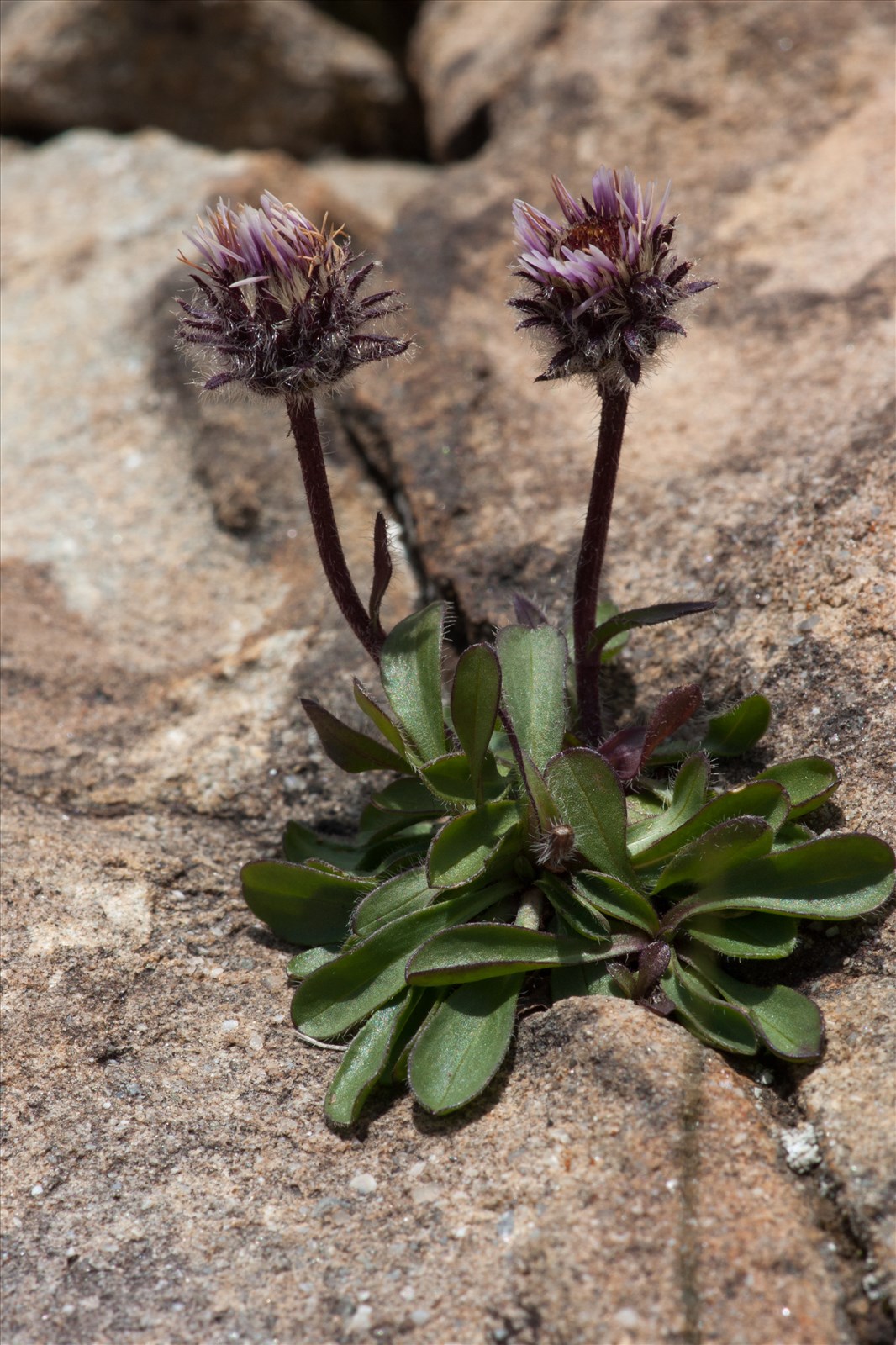 Plante vivace de 5-10 cm, à tige dressée, simple, pubescente ; feuilles pubescentes, bordées de longs cils blancs, les radicales rétrécies en pétiole, oblongues-obovales, arrondies ou spatulées, jamais mucronées, quelquefois émarginées au sommet, les suivantes peu nombreuses, oblongues, obtuses ou lancéolées, sessiles, demi-embrassantes ; involucre hérissé, laineux, à folioles purpurines ; capitule toujours solitaire, terminal ; ligules étalées, blanches ou roses.