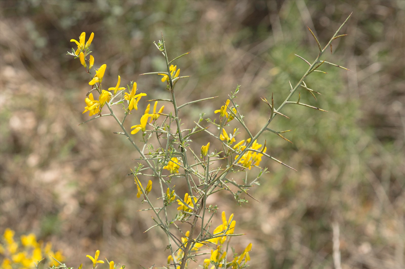 Arbrisseau de 40 cm à 1 mètre, un peu glauque, à racine non rampante, à rameaux presque glabres, à épines robustes ; feuilles courtes, celles des rameaux naissant à l'aisselle d'épines simples, alternes ; fleurs petites, de 7-8 mm de long, en fascicules sur les épines primaires et secondaires ; bractéoles calicinales aussi larges que le pédicelle ; calice légèrement pubescent ; corolle jaune, non veinée ; ailes plus courtes que la carène droite ; gousse ovale velue, dépassant peu le calice, à 6 graines.