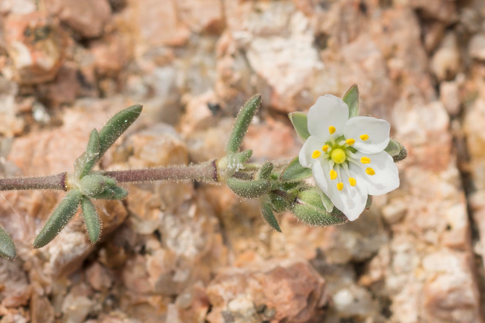 Plante vivace, toute pubescente-glanduleuse, à souche épaisse ; tiges robustes, d'environ 10 cm ; feuilles très charnues, courtes, largement linéaires, en fascicules très rapprochés, presque imbriquées ; stipules rapprochées, grandes, lancéolées ; fleurs blanchâtres, en cymes peu fournies ; pédicelles 1-2 fois plus longs que la capsule ; pétales plus courts que les sépales subaigus ; capsule subglobuleuse, plus courte que le calice ; graines non ailées.
