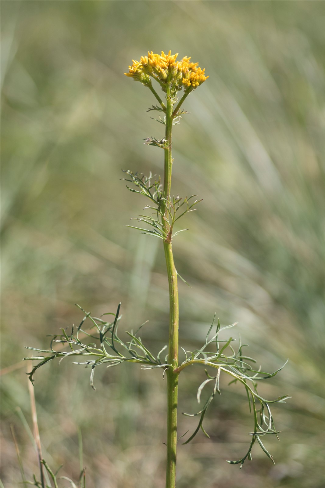 Plante vivace ; souche cespiteuse, rampante ; tige de 3-7 cm, dressée, raide, glabre, rameuse au sommet ; feuilles glabres, bi-tripennatiséquées à subdivisions très étroitement linéaires, presque filiformes, les inférieures pétiolées, les supérieures sessiles ; involucre ovoïde, à folioles lancéolées-linéaires, épaissies en côtes, courbées en gouttière, fortement pressées et conniventes sur les akènes à maturité ; capitules assez petites, en corymbe compact ombelliforme ; fleurs jaunes.