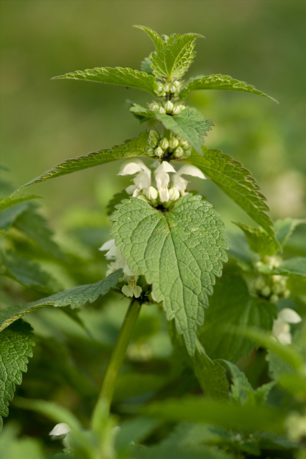 Plante vivace de 20-60 cm, velue, à tiges redressées, feuillées ; feuilles vertes, pétiolées, ovales en coeur, acuminées, fortement dentées ; fleurs blanches souvent tachées de vert, grandes, en verticilles écartés, fournis ; calice à dents molles, en alêne, plus longues que son tube ; corolle d'environ 2 cm, à tube renversé en arrière, courbé-ascendant, renflé au-dessus du rétrécissement inférieur, muni en dedans d'un anneau de poils oblique ; lèvre supérieure entière, à bords longuement barbus, l'inférieure à 2-3 dents de chaque côté à la base ; anthères velues.