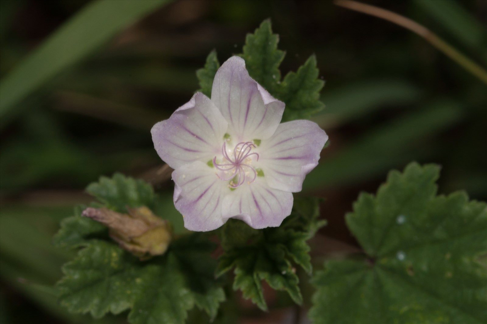 Plante annuelle ou bisannuelle, munie de poils mous peu abondants ; tiges de 20-50 cm, couchées ou étalées ; feuilles toutes suborbiculaires, superficiellement lobées, crénelées ; fleurs blanches ou lilacées, petites, en fascicules axillaires ; calicule à folioles étroites, linéaires, naissant près du pédicelle, plus courtes que le calice ; calice peu accrescent, à lobes triangulaires, dressés, ne cachant pas les carpelles ; corolle 1-2 fois plus longue que le calice, à onglets barbus ; carpelles pubescents, lisses, à bords non dentés, jaunâtres à la maturité.