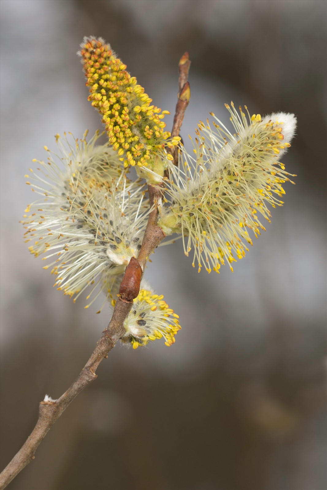 Arbrisseau ou arbuste de 3-10 mètres, à rameaux étalés dressés, arrondis, les jeunes et les bourgeons bientôt glabres ; bois nu très lisse ; feuilles grandes, pétiolées, ovales, à pointe recourbée, un peu ondulées, vertes et luisantes en dessus, mollement blanches-tomenteuses en dessous ; chatons précoces, gros, oblongs ou cylindriques, denses, subsessiles, à écailles velues, noirâtres au sommet ; style court ; capsule tomenteuse à pédicelle 3-4 fois plus long que la glande.