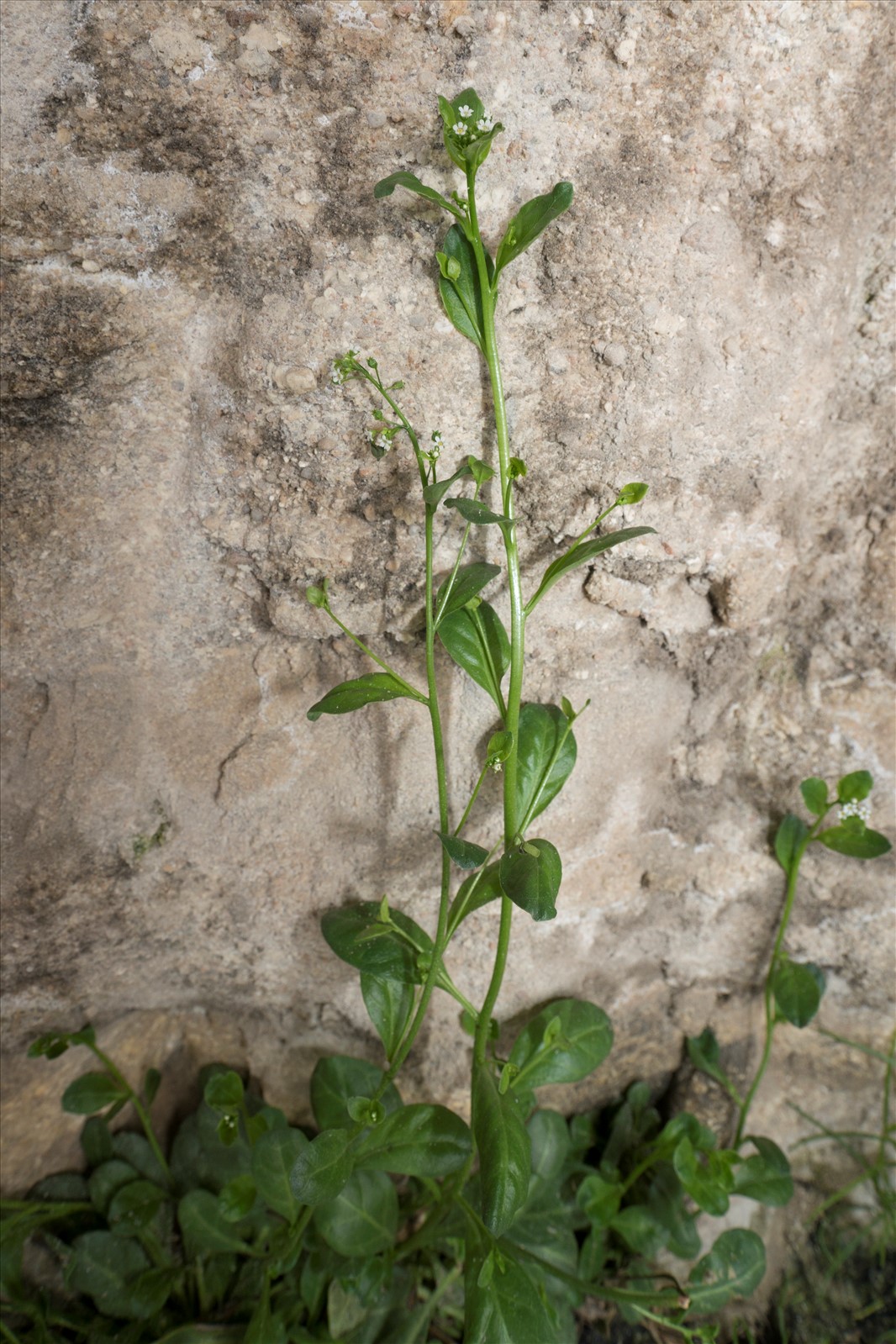 Plante vivace de 20-00 cm, glabre, à souche courte et fibreuse ; tiges dressées, cylindriques, creuses, peu rameuses ; feuilles radicales en rosette, les caulinaires alternes, toutes obovales, atténuées en pétiole, entières, d'un vert pâle ; fleurs blanches, petites (3 mm de diam.), en grappes terminales formant une panicule longue et étroite ; pédoncules coudés et munis d'une bractéole un peu au-dessus du milieu ; calice à tube subglobuleux soudé avec l'ovaire, à 5 dents triangulaires ; corolle en coupe, à tube. court, à gorge munie de 5 écailles alternant avec 5 lobes dépassant un peu le calice ; capsule globuleuse, incluse, s'ouvrant au sommet par 5 valves ; graines nombreuses.