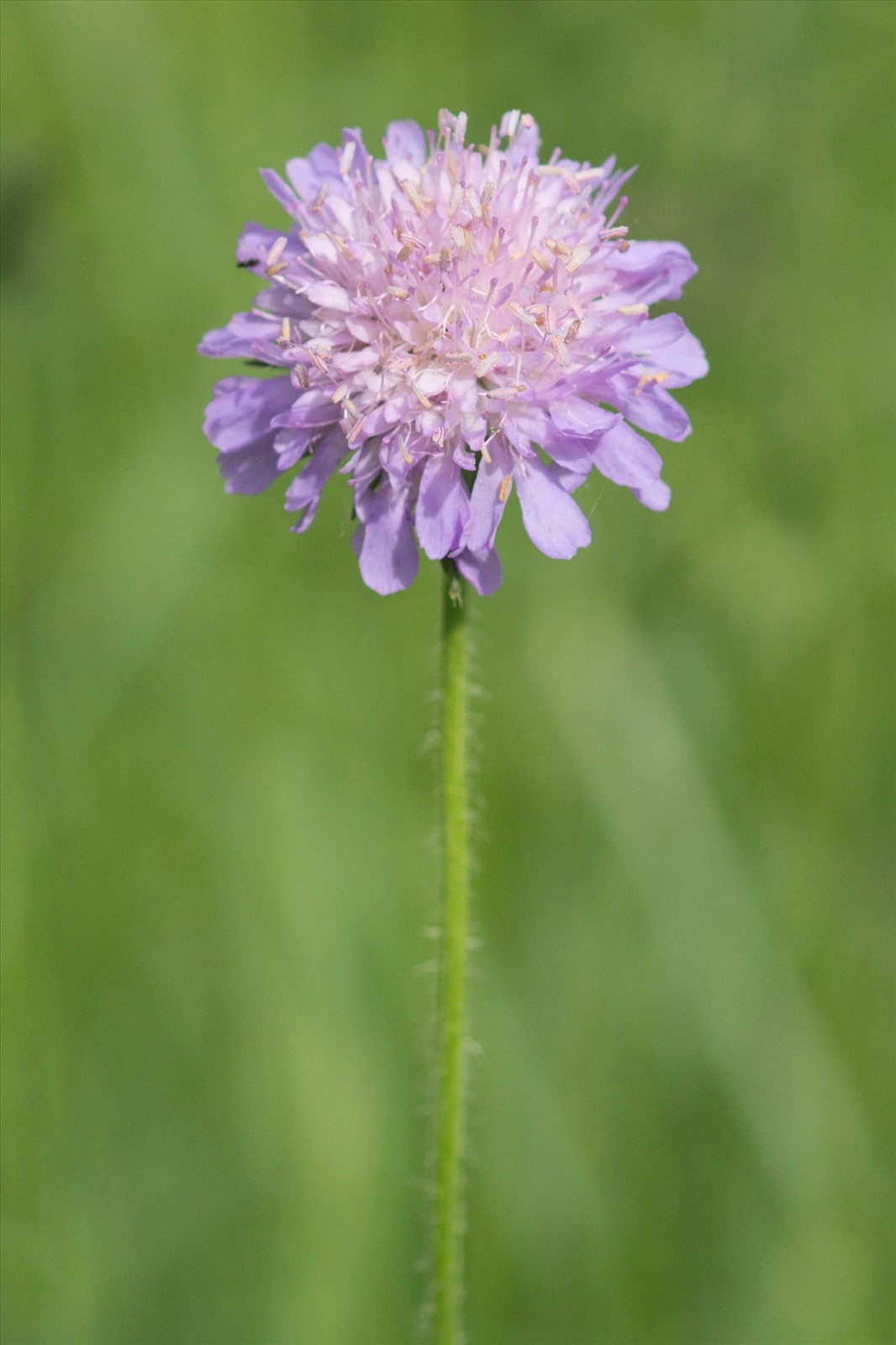 Plante vivace de 30-80 cm, plus ou moins poilue, à tiges ordinairement rameuses, à rameaux étalés ; feuilles pubescentes ou velues ; les radicales crénelées ou incisées-lyrées, les caulinaires ordinairement pennatiséquées, à paires presque également distantes ; fleurs d'un bleu clair, rayonnantes ; involucre à environ 10 folioles linéaires, plus courtes que les fleurs ; têtes fructifères assez grandes, ovoïdes-subglobuleuses ; calicule poilu, parcouru par 8 sillons ; arêtes calicinales noirâtres, sétacées dès la base et sans nervure, 3-4 fois plus longues que la couronne.