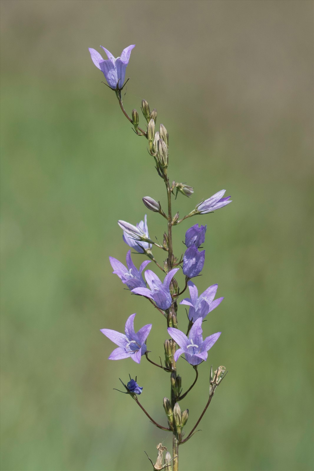Plante bisannuelle de 40 à 80 cm, velue et un peu rude, à racine charnue, en fuseau ; tige effilée, simple ou rameuse au sommet, peu feuillée ; feuilles inférieures oblongues, ondulées-crénelées, atténuées en pétiole, pubescentes ou glabres ; fleurs bleues, nombreuses, en grappes longues et étroites munies à la base de rameaux courts et dressés ; calice glabre, à lobes linéaires, égalant le milieu de la corolle ; celle-ci moyenne (à peine 2 cm), glabre, plus longue que large, divisée jusqu'au tiers, à lobes lancéolés, peu étalés ; capsule dressée.