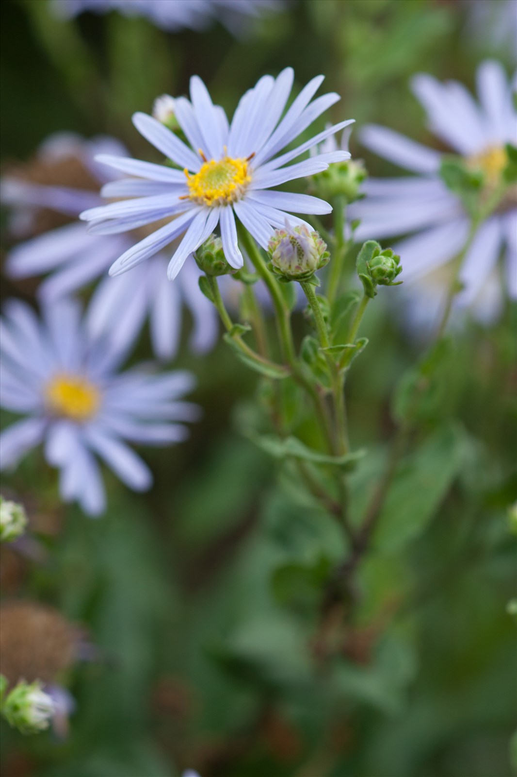 Plante vivace de 15 à 50 cm, à tige dressée, simple ou rameuse nue au sommet, brièvement pubescente. Feuilles pubescentes, rudes sur les deux faces, trinervées, ordinairement très entières, les inférieures ovales-oblongues ou elliptiques, atténuées en pétiole, les suivantes sessiles, oblongues-lancéolées, aiguës. Involucre à folioles velues, oblongues, les extérieures très obtuses à sommet recourbé en dehors. Soies de l'aigrette roussâtres, à peine une fois plus longue que l'akène. Capitules de 3 cm environ de diamètre, au nombre de 2 à 6 en corymbe court et lâche, rarement un seul capitule terminal. Ligules bleues. Fleurs du centre tubuleuses jaunes.