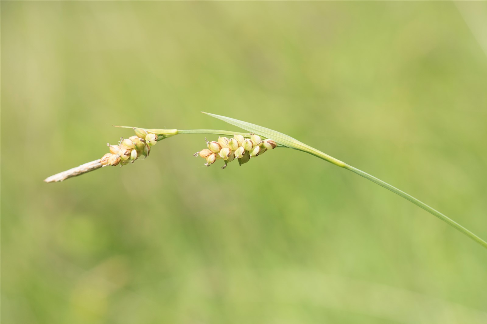 Plante vivace de 20 à 50 cm, glabre, à souche stolonifère ; tige dressée ou inclinée au sommet, subtrigone, lisse ; feuilles glauques, larges de 2 à 4 mm, rudes, épi mâle solitaire, oblong-linéaire, brunâtre ; 2 à 3 épis femelles écartés, oblongs-cylindriques, assez lâches, dressés, pédonculés ; bractées engainantes, foliacées, à gaine étroite et appliquée, à limbe assez long ; écailles brunes-rougeâtres, ovales-lancéolées ; 3 stigmates ; utricules olivâtres, ovoïdes-renflés (4 mm), peu nervés, rétrécis en bec court et tronqué dépassant l'écaille.
