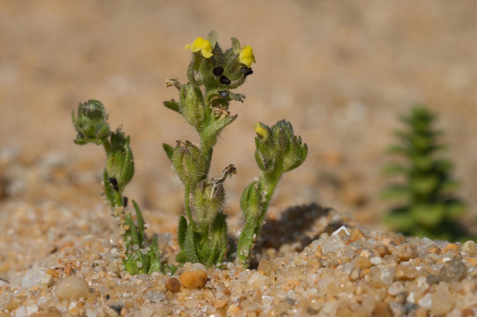 La hauteur de cette plante annuelle varie de 5 à 15 cm. Elle est pubescente. Les feuilles inférieures se présentent en verticilles. Les feuilles supérieures de forme lancéolée sont plus éparses sur la tige. L'inflorescence se présente en grappes de fleurs de couleur jaune. La corolle comporte un éperon grêle ayant une couleur légèrement violacée. Le pédoncule est court. Le calice comporte des poils glanduleux. Le fruit se présente sous forme d'une capsule obovale comportant des graines noires.