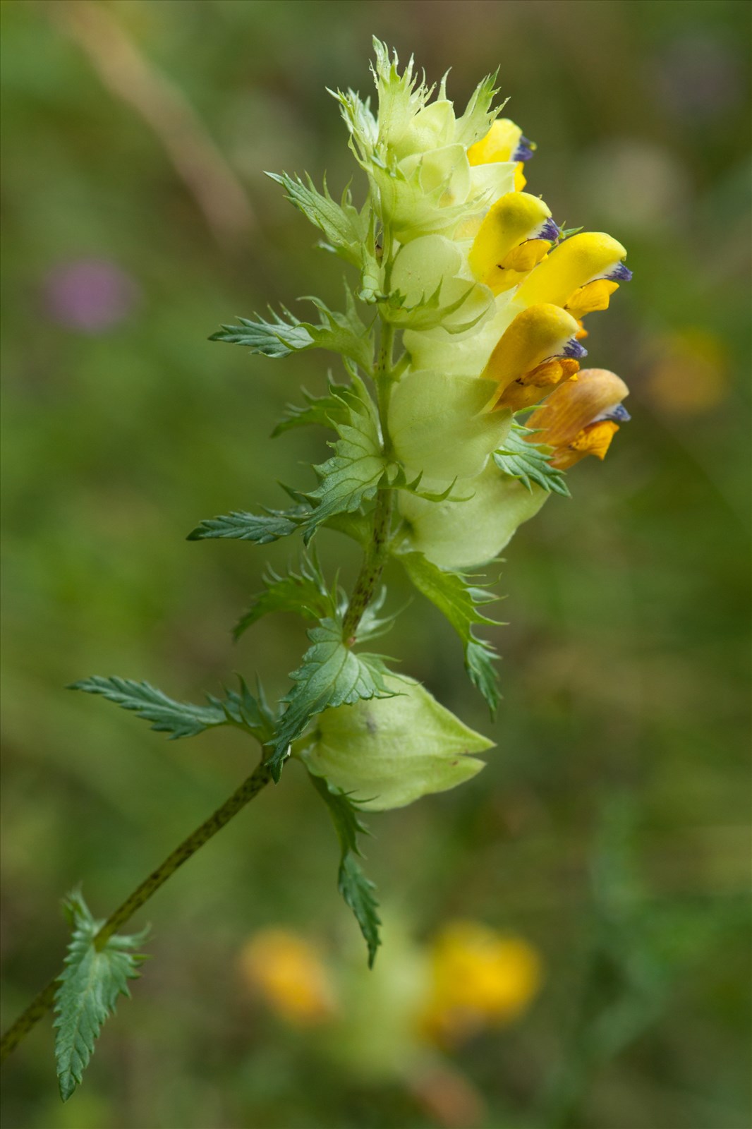 Plante annuelle de 10-50 cm, glabrescente ou pubescente ; feuilles ovales ou oblongues-lancéolées, un peu atténuées au sommet, crénelées-dentées ; bractées glabres, blanchâtres, largement triangulaires, atténuées en pointe, incisées-dentées, à dents inégales, graduellement décroissantes, les inférieurs bien plus longues et profondes de 5-7 mm, aiguës ou courtement aristées ; calice glabre ; corolle jaune, longue de 15-25 mm, accrescente, à tube un peu courbé, à lèvres rapprochées et à gorge fermée; dents du casque coniques, violacées.