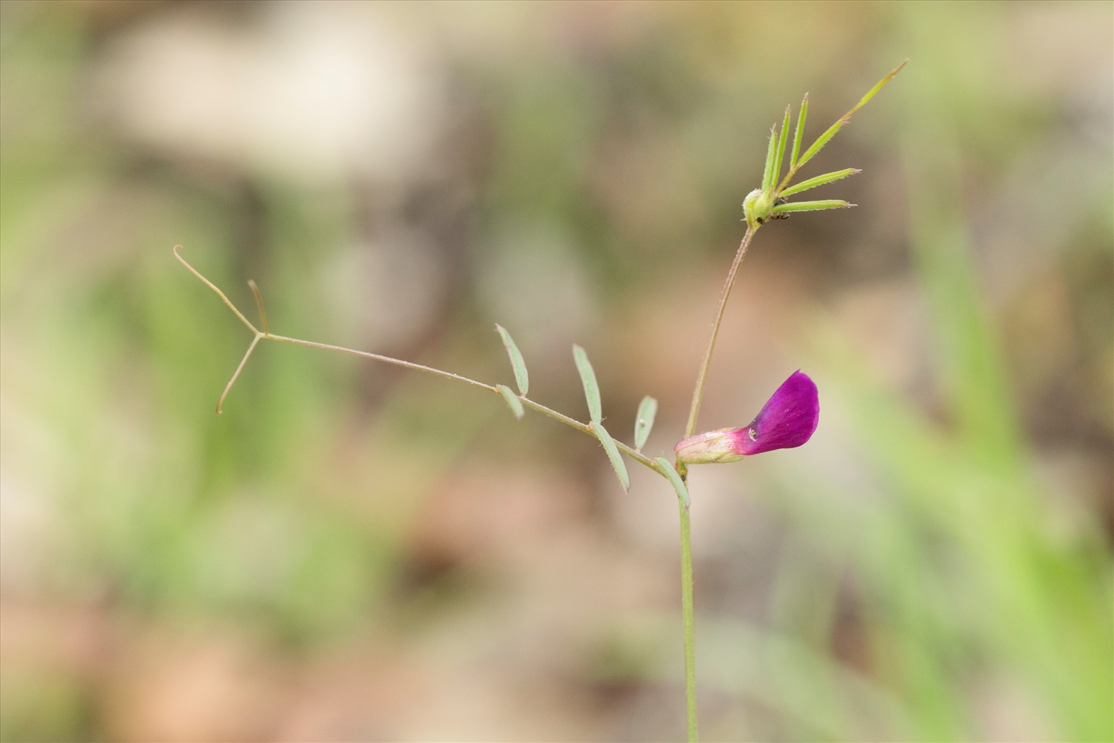 Plante annuelle de 10-80 cm, pubescente ; feuilles ci 4-7 paires de folioles, les supérieures étroites, aiguës, obtuses ou tronquées ; vrilles rameuses ; stipules dentées, souvent tachées ; fleurs d'un rouge vif ou à étendard violacé avec ailes rouges, assez petites, n'atteignant pas 2 cm, solitaires ou géminées, subsessiles ; calice à dents égales, égalant le tube ; gousse de 30-40 mm sur 4-7, étroitement cylindracée, non bosselée, ni stipitée, dressée ou étalée, glabre et noire à la maturité ; graines petites, globuleuses, non séparées par du tissu cellulaire. Plante polymorphe.
