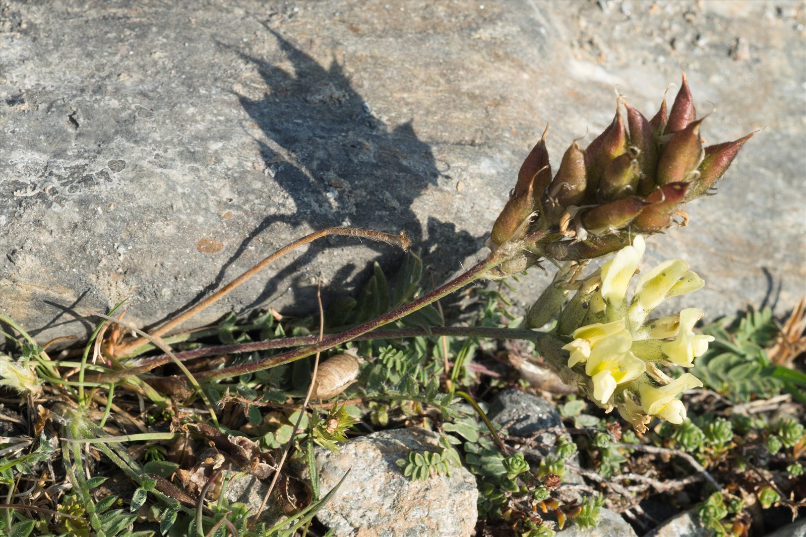 Plante de 10-20 cm, pubescente-soyeuse, à poils appliqués, non glanduleux ; tiges nulles, feuilles et pédoncules naissant d'une souche épaisse ; feuilles à 10-15 paires de folioles elliptiques ou lancéolées ; stipules soudées ; fleurs d'un blanc jaunâtre, dressées, 5-10 en grappes ovoïdes, serrées, sur des pédoncules dépassant ordinairement les feuilles ; calice velu, à tube se fendant à la maturité, à dents 3 fois plus courtes que le tube ; étendard oblong, dépassant longuement les ailes ; gousses de 14-18 mm sur 6-8, dressées, ovales apiculées, renflées, non stipitées, canaliculées sous la suture interne, velues.
