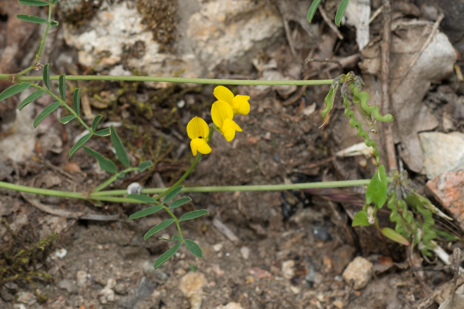 Plante vivace de 10-30 cm, glabrescente, à souche dure ou un peu ligneuse; feuilles à 4-7 paires de folioles ; fleurs jaunes, assez grandes (8-10 mm), 5-12 en ombelles sur des pédoncules 2-3 fois plus longs que la feuille ; lèvre supérieure du calice à dents dressées, non divariquées; pétales à onglets dépassant 1 fois le calice, celui de l'étendard écarté des autres ; gousses nombreuses, pendantes, longues de 2-3 cm, couvertes de glandes rougeâtres, courbées, flexueuses sur le bord externe, à 2-6 articles, à échancrures et graines arquées en demi-cercle.