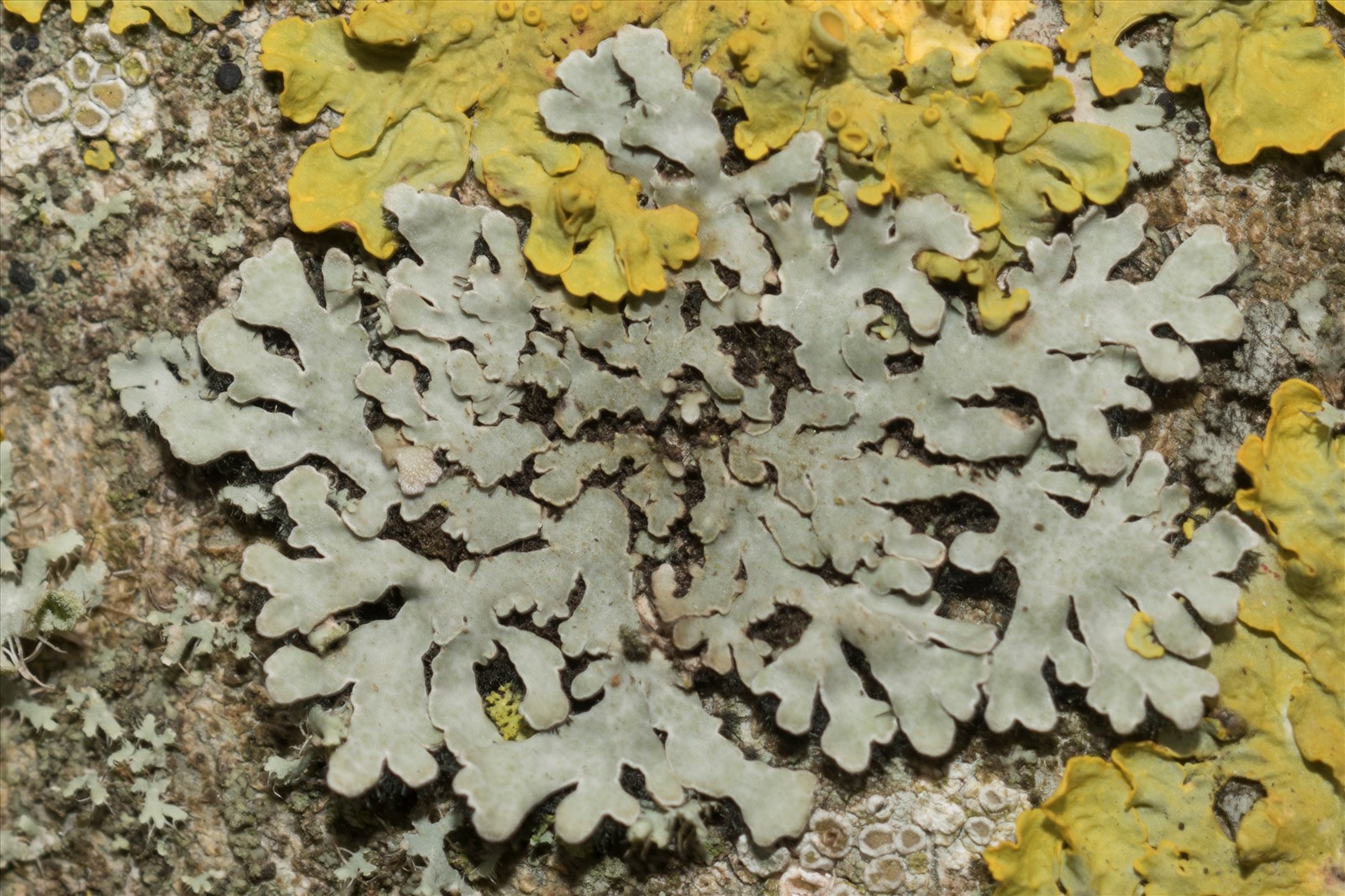 Ce lichen est essentiellement corticole bien qu'on puisse le trouver sur des substrats artificiels Le thalle est de couleur grise quand il n'est pas humide. Ne réagit pas au réactif K contrairement aux Physcia. Le thalle est muni de soralies (sauf sur les jeunes thalles) qui sont essentiellement laminales et de forme arrondie. La face inférieure comporte de nombreuses rhizines noires.